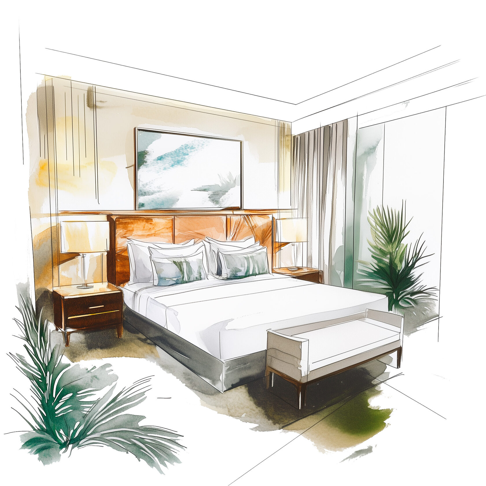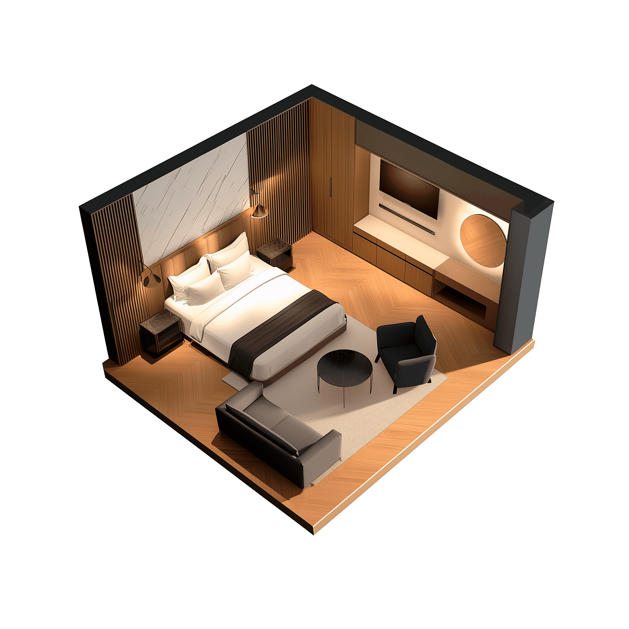 Вы получите тщательно проработанные удобные варианты размещения и размеры мебели для номера, учитывая все ваши потребности и предпочтения.